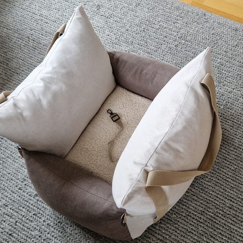 Trixie bilsäte för hund i svart tyg. Sätet har vadderade kanter och mjuk insida för ökad komfort. Utrustat med säkerhetsremmar och spännen för fastsättning i bilens säte samt selefäste för hunden. Ytterfack finns på sidan för förvaring av mindre tillbehör. Passar mindre hundar vid bilresor.