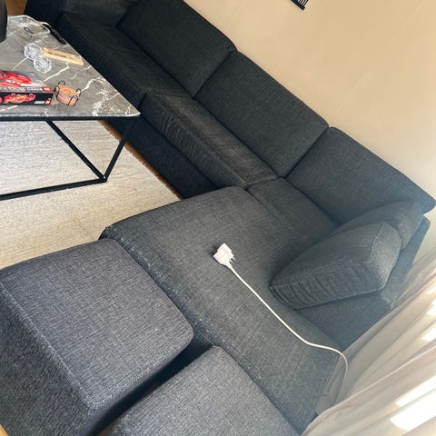 Vill sälja den då vi vill ha i en annan färg samt annan modell. Annars är den super perfekt för någon som vill ha en mörkgrå färg på soffa .