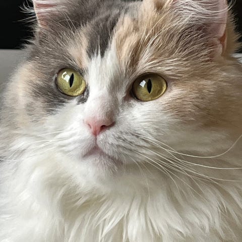 Hon är en nyfiken och mysig katt som gärna vill vara med i allt som händer.