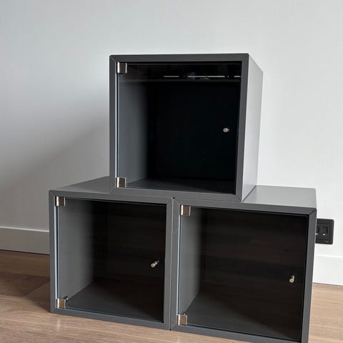 Väggskåp (Metod) från Ikea med Bodbyn vitrindörrar samt två lådor. Två ej använda täcksidor ingår. Höjd 100 cm, bredd 80 cm.