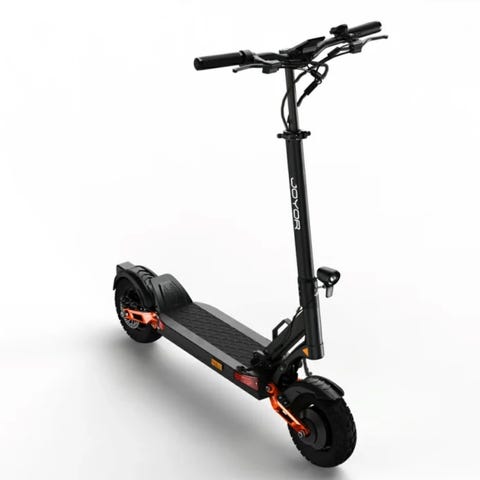 Elsparkcykel i svart färg med ståplatta och styre. Modellen har två hjul, hopfällbar konstruktion och handtag med grepp. Lämplig för persontransport på kortare sträckor på hårda underlag. Utrustning och tekniska specifikationer kan variera beroende på modell och tillverkare.