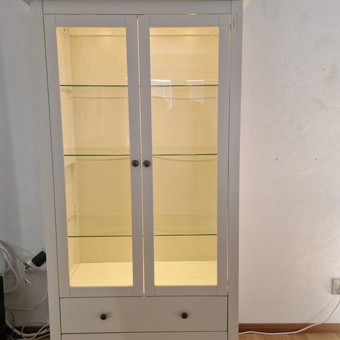 Säljer ett stilrent och charmigt vitrinskåp i mycket fint skick. Skåpet har glasdörrar som framhäver ditt porslin, glas eller prydnader på ett elegant sätt. Passar lika bra i vardagsrum som i kök eller matsal.
