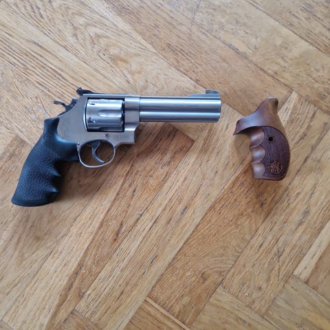 Säljer en S&W 686 model 3. Årsmodellen är ca 1991. Revolvern är i fint skick och utrustad med ett RF korn med fyra förinställda höjdlägen för olika skjutavstånd. Det rinns en träkolv och en i gummi. Kan provskjutas i norra Bohuslän.