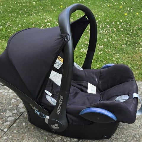 Babyskyddet har justerbar sele och bra sidokrocksskydd för extra säkerhet. Basen gör det enkelt att klicka i och ur stolen ur bilen – smidigt i vardagen.