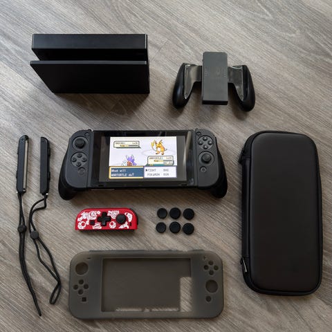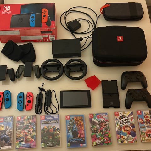 Nintendo Switch spelkonsol med handkontroller och fodral