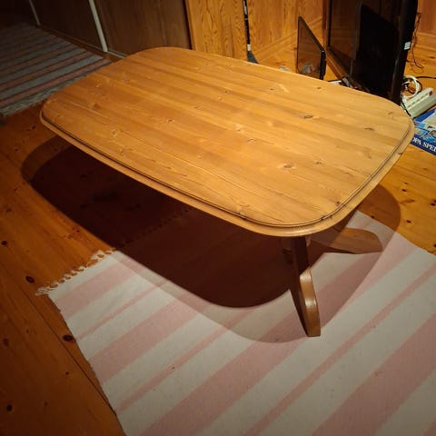 Stabilt soffbord i massiv furu. Inköp Möbelkvaliten! Obs! Finns även soffa och bokhylla i samma serie ute till försäljning . Hämtning av köpare!