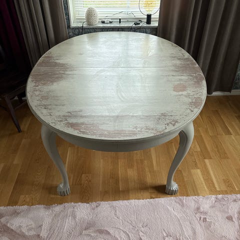 Ca 81cm högt. Lite högre än standard matbord. Skulle användas som serveringsbord, men blev aldrig av.