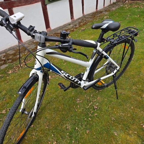 Merida hybridcykel för unisex, 28"/700c-hjul. Cykeln har rak styre, växelsystem Shimano med flera drev fram och bak samt fälg eller skivbromsar. Passar för pendling och vardagscykling på blandat underlag.