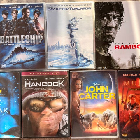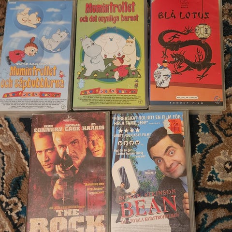 Paket med fem DVD-filmer. Innehåller Mr. Bean’s Holiday, Bean, Ace Ventura – Pet Detective, Ghostbusters samt AVP Alien vs Predator. Filmerna är i originalfodral enligt bilderna. Lämpliga för DVD-spelare som stödjer region och format enligt respektive omslag.
