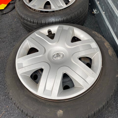 Fiat däck med fälgar i dimensionen 215/70R15C. Kompletta hjul med Fiat-navkapslar enligt bild. Däcktyp framgår inte närmare av uppgifterna, kontrollera därför vid behov på plats. Lämpliga som kompletta hjul till fordon som använder dimensionen 215/70R15C och har Fiat-bultmönster/fälgpassning. Mönsterdjup 8 mm. Kapslarna är i mycket bra skick ej färgsläpp