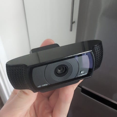 Logitech webbkamera med upplösning upp till HD 1080p. Kameran är svart och ansluts med kabel. Avsedd för användning med dator för exempelvis videomöten och inspelning. Digital kamera/webbkamera med inbyggd mikrofon och fäste för skärm eller liknande yta.