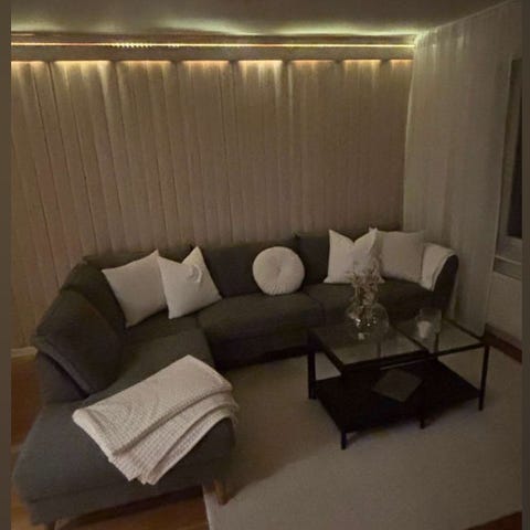 Mittendelen är 3-sits men jag valde två bredare dynor istället för 3 mindre. Mycket gott skick, inga märken och inte nedsutten.