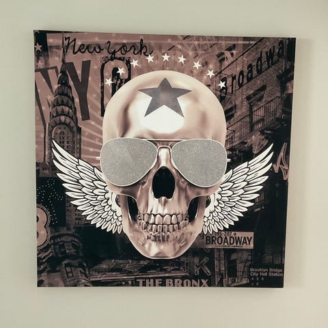 Rund väggklocka 43 cm. med svartvitt porträttmotiv. Klockan är tillverkad i glas och har en modern, grafisk design. Passar som inredningsdetalj i exempelvis vardagsrum, sovrum eller kontor. Drivs av batteri. Kan skickas. Finns utanför Göteborg.