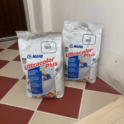 Överblivna säckar från badrumsbygge. Inköpta ca 8månader sen.