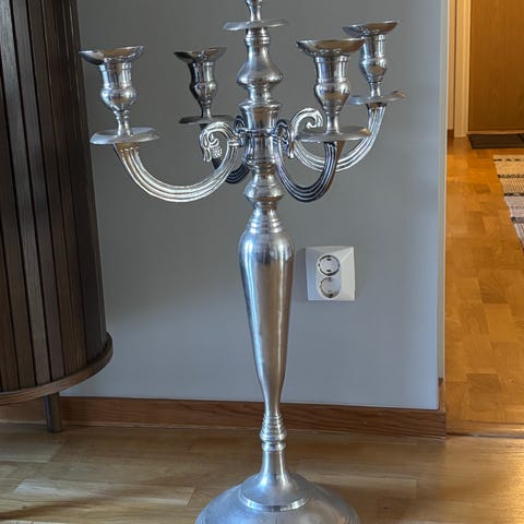 Kandelaber för 7 ljus i smide, Ahrnebergs. Cirka 55 x 45 cm. Färgen har flagat så den behöver målas om (om man vill).