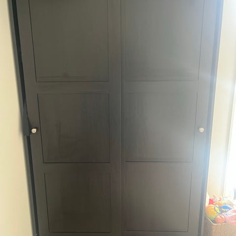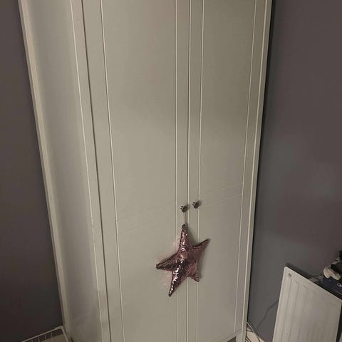 Säljer en hauga garderob / klädskåp från Ikea. Den är målad i en mörkgrön kulör, sprutmålade dörrar. Jag har även sågat av kanten upptill så den är slät då jag haft skåp från Ikea ovanpå. Den är målad med samma kulör som Ikeas luckor grågrön Nickebo.