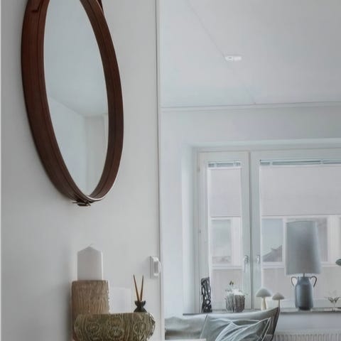 Superfin som väggkonst i vardagsrum, sovrum eller hall. Kan placeras direkt på golvet lutad mot vägg men är designad med två stabila upphängningsbeslag.