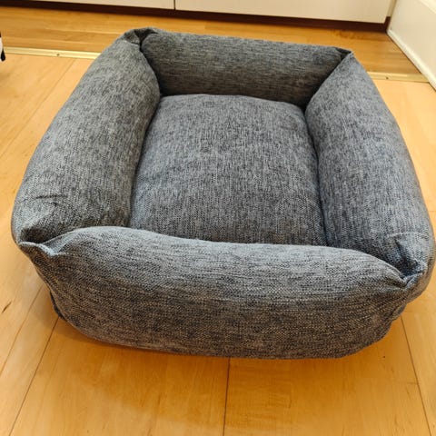 Stor Hundsäng I hårdplast. Tyvärr finns ej madrassen kvar men går att köpa till. Finns att hämta i tumba