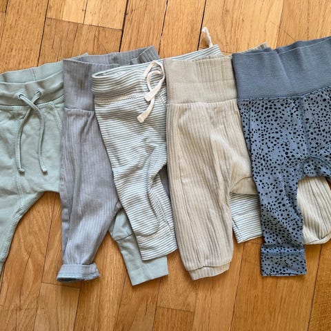 Klädpaket med 11-pack byxor i storlek 56, varav ett par shorts.