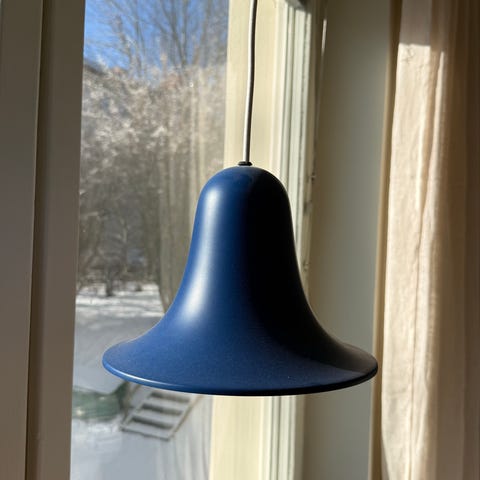 Snygg vitlackerad taklampa i retrostil, På några små ställen har den vita färgen släppt, men annars i fint skick.