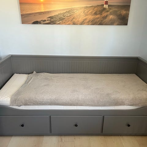 HEMNES Dagbädd säljes pga flytt. Köptes för 2 år sedan. Mycket bra skick och sparsam använt. Delvis nedmonterat. Madrass ingår.