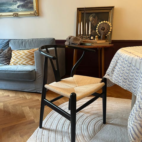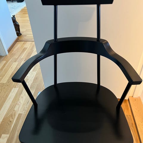 Fyra stolar Icha Chair från svenska Massproductions säljes, design Chris Martin. Samtliga stolar i svartbetsad bok varav två av nästa nya med klädd sits med ljusgrått ulltyg (Kvadrat Vidar). Fint skick!