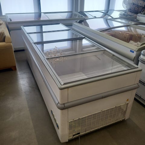 Combisteel glassfrys i vit färg. Frysen är avsedd för förvaring och exponering av frysta varor, exempelvis glass, i butik, kiosk eller restaurangmiljö. Utrustad med glasöverdel och skjutlock upptill samt hjul för enklare förflyttning. Vit utsida med invändig fryslåda anpassad för korgar eller direkt varuförvaring.