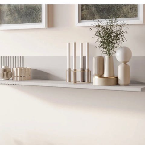 IKEA vägghylla kub och rund spegel brun/vit