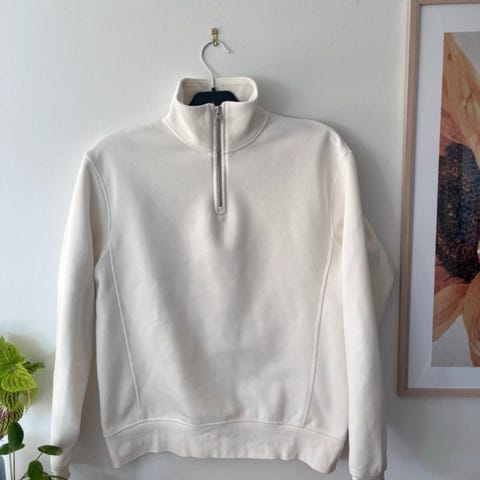 Zara skjorta för herr i storlek S. Skjortan är vit med smala vertikala ränder och har lång ärm, klassisk krage och knappstängning framtill. Material i polyester. Bröstficka på vänster sida och manschetter med knappar. Passar som vardags- eller kontorsskjorta.