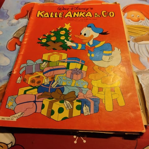 Jag säljer nu en serietidning med Walt Disney's Kalle Anka & C:o med omslag som visar vargar i röda kläder mot grön bakgrund. Tryckt seriealbum i färg, lämplig för samlare av Kalle Anka och klassiska serietidningar.