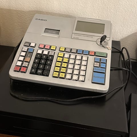 Kassan kan även användas som dator. Medföljer vitt HP-tangentbord och datormus. Ingår även kvittoskrivare och kortterminal, som kan ingå som ett komplett kassasystem.