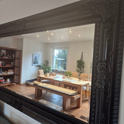Spegeln mäter 60 cm och köpt på Royal Design.