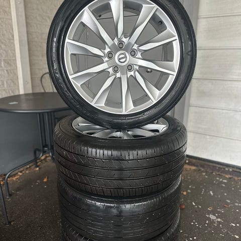 Sommardäck sitter på men är slitna och behöver bytas – säljs därför främst som fälgset.