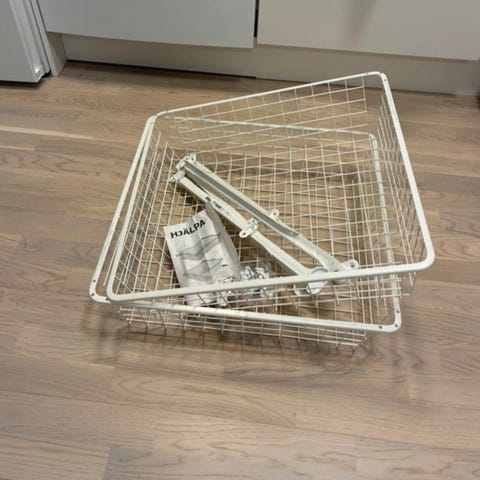 IKEA HJÄLPA trådkorg och utdragsskena vit 80x40 cm och 55 cm