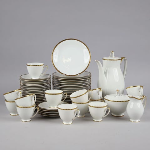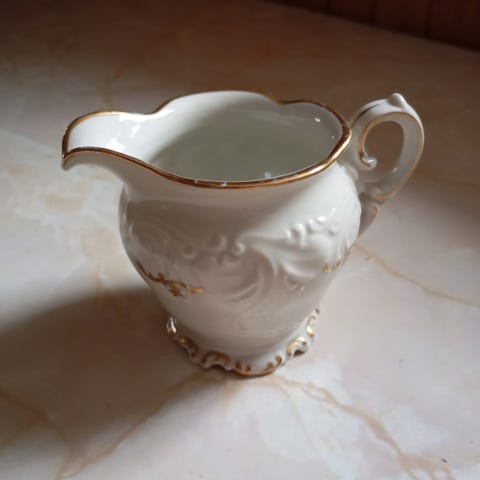 Eschenbach Hackefors Rita kaffekanna och gräddkanna vit porslin med guldkant