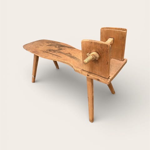 Säljer ett komplett och mycket vackert handgjort trågställ i trä. Stället är komplett med åtta stycken handtäljda tråg (träfat) i varierande storlekar som vilar stadigt på ställningens träpluggar.