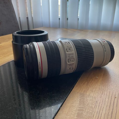 Canon EF 70-200mm telezoomobjektiv i vit färg. Objektivet har brännviddsomfånget 70–200mm och är utrustat med ultraljudsmotor (Ultrasonic) för snabb och tyst autofokus. Passar Canon EOS-kameror med EF-fattning. Objektivet har zoom- och fokusringar samt stativfäste för stabil montering vid användning med stativ. Lämpligt för exempelvis sport-, natur- och porträttfoto där längre brännvidd behövs.