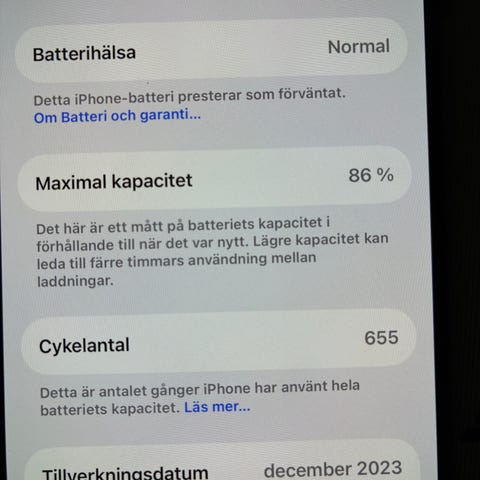 Batterihälsa: 97 % (endast 184 laddningscykler).