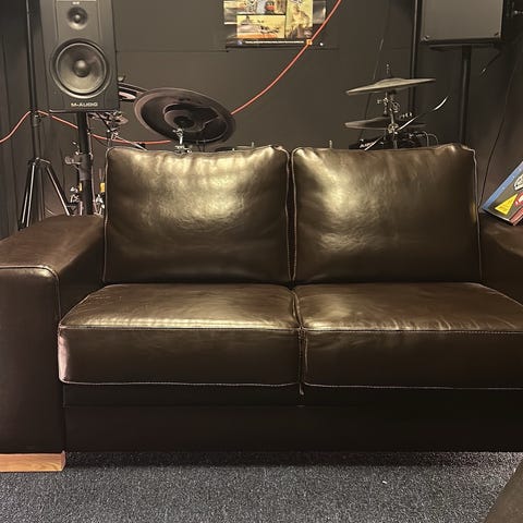 Säljer två bekväma 3-sits soffor i mörkbrunt skinn/skinnimitation med