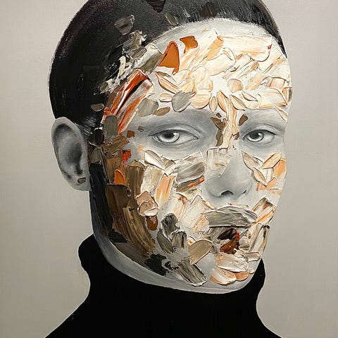 Tavla porträtt abstrakt grå och gul akrylmålning