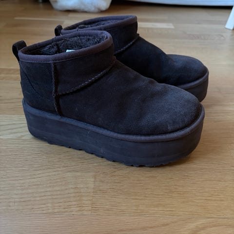 UGG vinterskor i svart färg, storlek 37. Modellen är en kortare stövel med mjuk, fodrad insida och kraftig yttersula i gummi. Ovandelen är i ett mockaliknande material. Passar för kallare väder och vardagsanvändning.