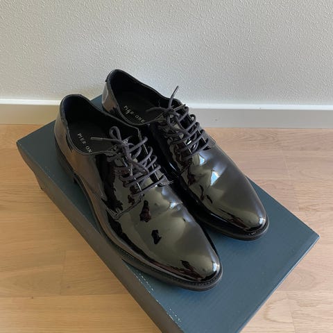 Ecco finskor i svart skinn, storlek 41. Klassisk snörmodell med låg klack och gummisula. Slät ovandel med diskreta sömmar och rundad tå. Passar som herrskor till vardag, kontor eller mer formella tillfällen där en enkel, svart lädersko önskas.