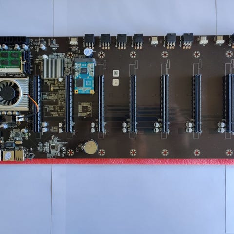 Onda D1800 BTC MBO / Moderkort anpassat för Mining / gruv drift med inbyggt Intel J1800 CPU, plats för 6 stycken GPU:er / grafikkort som monteras direkt på moderkortet.