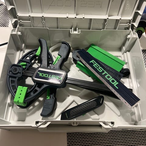 Festool styrskena i silver med gröna detaljer. Avsedd för användning tillsammans med kompatibla sågar och andra elverktyg för rak och kontrollerad sågning eller fräsning. Skenan är tillverkad i metall och har gummilist för bättre grepp mot underlaget. Lämplig för snickeri-, bygg- och renoveringsarbeten där precisa snitt behövs.