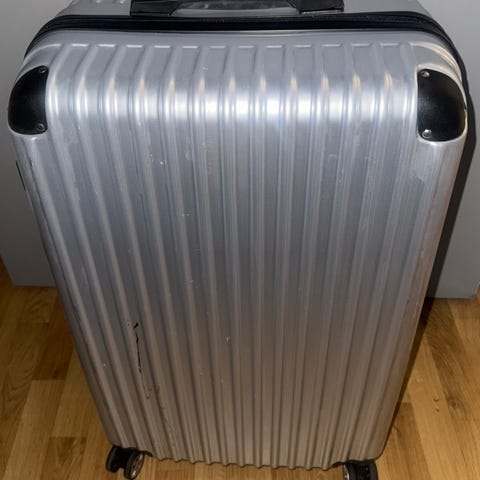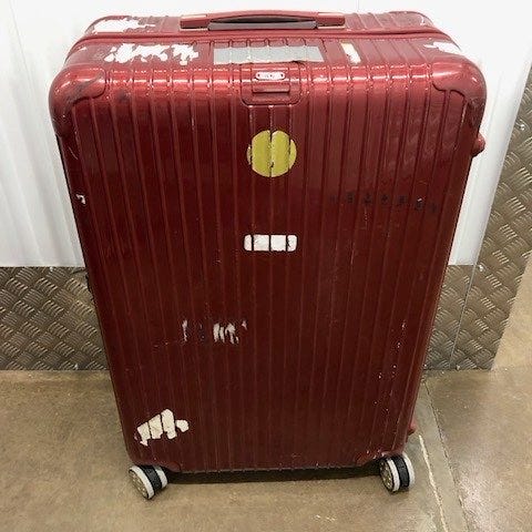 Rimowa resväska i hård plast i röd färg för unisex. Väskan har räfflad utsida och är utrustad med hjul och utdragbart handtag för enkel transport. Passar för resor där en slitstark och lättskött hård resväska önskas. Ytan visar tydliga spår av användning med repor och tejprester enligt bilderna. Allt går att fixa och fullt fungerande.