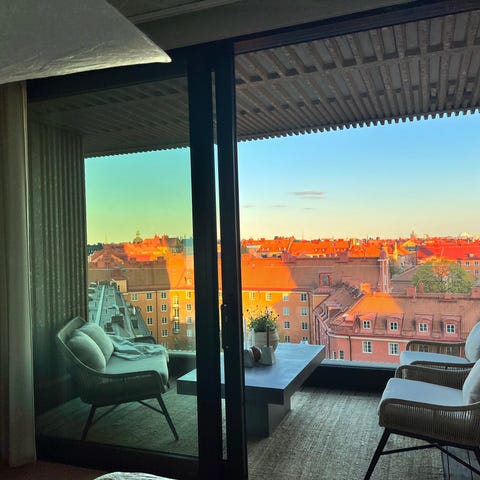 Loungeset bestående av två reclinerfåtöljer, en soffa, två fotpallar ett bord och ett mindre sidobord. Kan kombineras på många olika sätt.