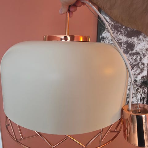 Mycket fin, med glasprismor och silvertråd. Ca 40cm i diameter