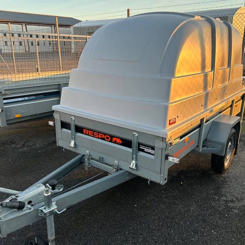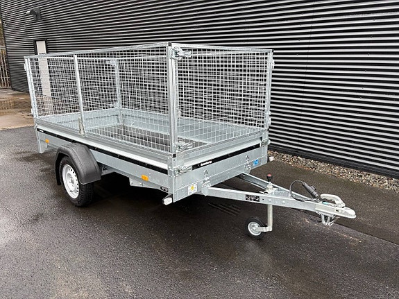 Släpet är utrustat med överdimensionerad axel, helgjuten kulhandske, avtagbar spiralkabel samt avbärare längs sidor och baktill.