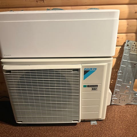 Komplett vit Panasonic luftvärmepump från 2024 säljes. Demonterad av auktoriserad firma och gasen är tillbakatryckt i utedelen.