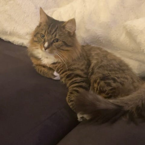1 unge kvar av vår kull med Mainecoon/ huskatts blandning.